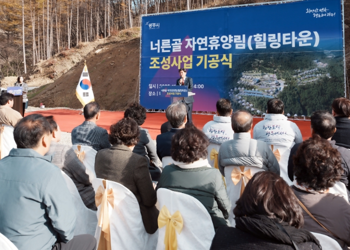 [뉴스앤톡] 광주시는 17일 시민 휴식·휴양 공간 확충과 산림 체험 기반의 산림 복지서비스 제공을 위해 추진 중인 ‘너른골 자연휴양림(힐링타운) 조성 사업’의 기공식을 개최했다.