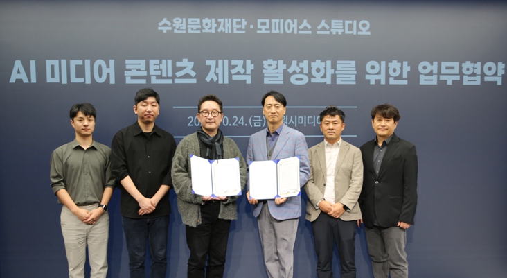 [뉴스앤톡] 수원문화재단 미디어센터는 지난 24일 모피어스 스튜디오와 ‘AI 기반 콘텐츠 창·제작 협력 체계 구축’을 위한 업무협약(MOU)을 체결했다.