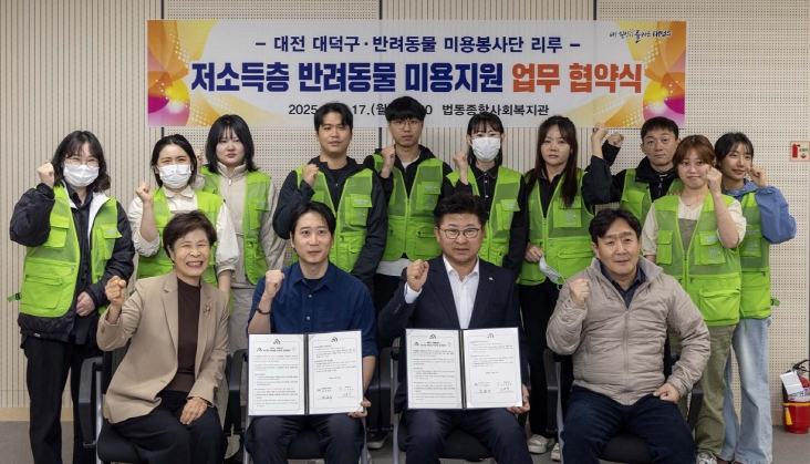 [뉴스앤톡] 대전 대덕구는 17일 반려동물 미용봉사단 ‘리루’(단장 서주영)와 저소득 주민의 반려동물 미용지원을 위한 업무협약을 체결했다고 밝혔다.