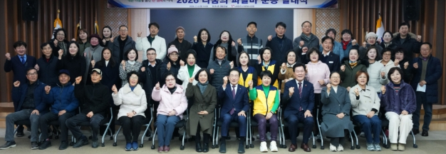 | ▲ 6일 시청 대회의실에서 열린 나눔의 파발마 운동 참석자들이 기념촬영을 하고 있다. |