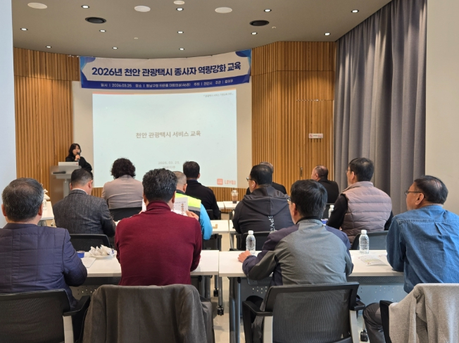 [뉴스앤톡] 천안시는 ‘관광택시’ 시범운영을 앞두고 25일 동남구청 타운홀 대회의실에서 참여 운행기사 12명을 대상으로 사전 교육을 실시했다.