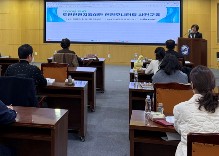 [뉴스앤톡] 전북특별자치도 인권담당관실은 6일 도청 중회의실에서 도민인권지킴이단 시·군 단장 14명을 대상으로 ‘인권모니터링 전문 강화 교육’을 실시했다.