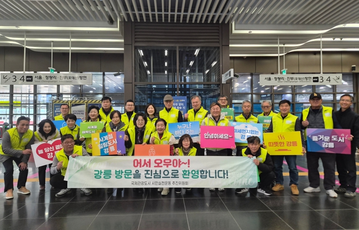 [뉴스앤톡] 국제관광도시 시민실천운동 추진위원회 깨끗분과소속 30여 명은 지난 22일 강릉역에서 전국 제일의 친절한 도시 강릉 조성을 위한 관광객 환영 캠페인을 추진했다.