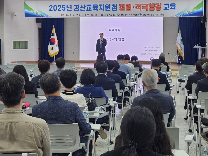 [뉴스앤톡] 경산교육지원청은 10월 15일 13시 10분부터 경산교육지원청 학생교육지원관 2강당에서 청렴·적극행정 교육을 실시했다.