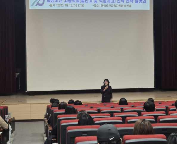 화성오산 비평준화 지역의 고입 정상화를 위해 실시한 이 설명회는 △2026학년도 경기도고등학교 입학전형 안내 △2026.3.1.자 경기오산소프트웨어고 입학전형 및 직업계고 학생들의 다양한 진로 성공 사례 공유 △대입 제도 변화에 따른 진로·진학 설계 방향 △고교학점제의 핵심 내용과 학교 교육과정 변화 △학생의 적성과 진로 희망에 따른 고교 유형별 선택 전략 등을 중심으로 약 3시간동안 진행됐다.