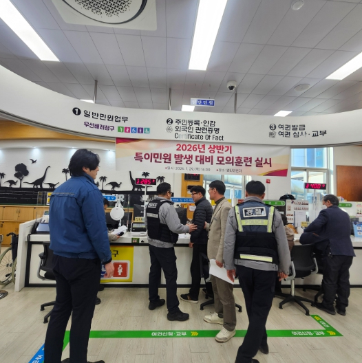 [뉴스앤톡] 고성군은 1월 29일 군청 열린민원과에서 고성경찰서와 연계하여'2026년 상반기 특이민원 대응 모의훈련'을 실시했다.