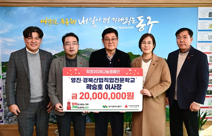 [뉴스앤톡] 곽승호 경북산업·영진직업전문학교 이사장은 지난 21일, 동구청을 방문, 관내 저소득 가정을 위해 이웃돕기 성금 2천만원을 기탁했다.
