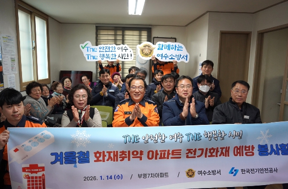 [뉴스앤톡] 여수소방서는 1월 14일, 여수시 여서동에 위치한 부영7차아파트에서 한국전기안전공사 여수지사와 함께 자동소화멀티탭 기증식 및 화재 예방 합동 안전 활동을 실시했다.