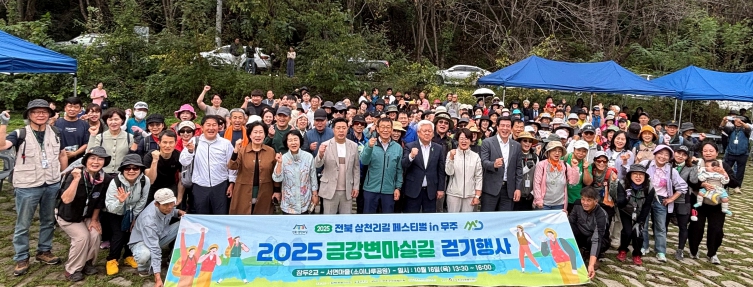 [뉴스앤톡] 전북특별자치도와 무주군이 공동 주최한 ‘2025 전북 삼천리길 페스티벌 in 무주 – 아름다운 금강변 마실길 걷기’ 행사가 16일 무주군 부남면 금강변 일원에서 200여 명이 참여한 가운데 성황리에 열렸다.