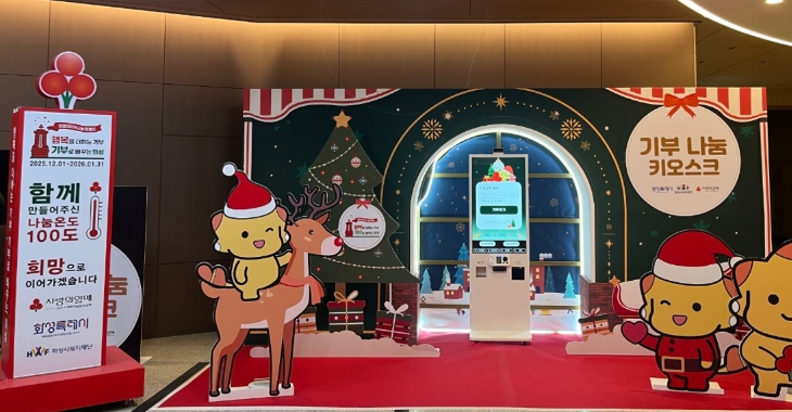 | ▲ 시청 로비에 설치된 사랑의 온도탑과 기부 나눔 키오스크 |