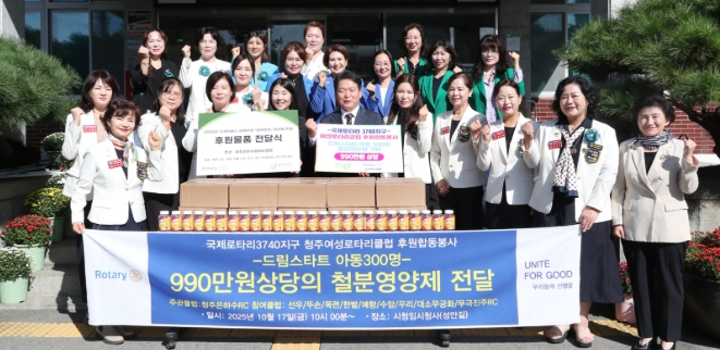 [뉴스앤톡] 청주시 국제로타리3740지구 소속 9개 여성로타리클럽은 17일 청주시청을 찾아 성장기인 취약계층 아동(드림스타트)을 위해 영양제를 기탁했다.