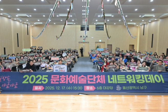 [뉴스앤톡] 울산 남구는 17일 남구청 6층 대강당에서 ‘문화예술단체 네트워킹데이’를 개최해 지역 문화예술단체 간 교류와 협력을 강화하고 활동 성과를 공유하기 위한 소통의 시간을 가졌다.
