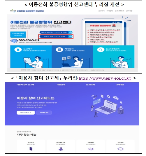 | ▲ ‘이용자 참여 신고제’ 신고 방법 및 누리집 안내 |