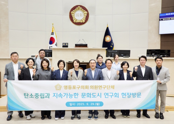 이날 간담회에는 용인특례시의회 유진선 의장을 비롯해 박희정, 신현녀, 박병민 의원과 영등포구의회 ‘탄소중립과 지속가능한 문화도시 연구회’ 이순우 대표 등 양 시·구 의원들이 참석했다. 이 자리는 ‘탄소중립연구소가 ‘2025 지방의정대상 정책연구부문 대상’을 수상한 것을 계기로, 연구 성과를 공유하고 지방의회 간 연구 교류를 강화하기 위해 마련됐다.