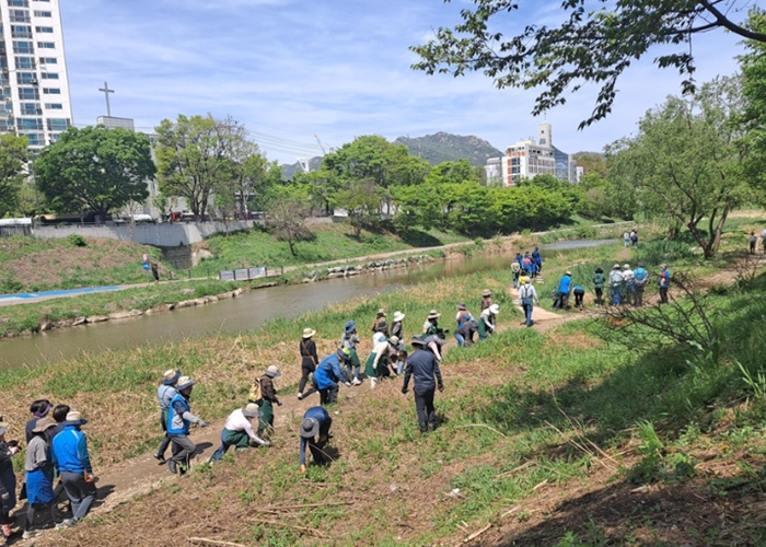 이번 활동은 번식력이 강해 토종식물의 생육을 저해하고 하천 생태계 균형을 훼손하는 생태계 교란식물을 시민과 함께 제거하는 민관 협력 사업이다.