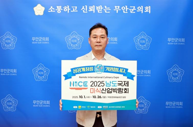 [뉴스앤톡] 무안군의회 이호성 의장은 김산 무안군수와 박종대 영암군의회 의장의 지명을 받아 오는 10월 1일부터 26일까지 목포문화예술회관 일원에서 열리는 ‘2025 남도국제미식산업박람회’ 성공을 기원하는 릴레이 응원 캠페인에 동참했다.