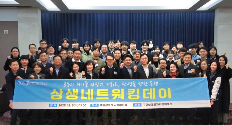 [뉴스앤톡] 구미상생일자리협력센터(센터장 유경숙)는 12월 3일 호텔 금오산 사파이어홀에서 ‘25년 센터 지원사업 참여기업 및 이차전지 기업 협력 협의회 회원사 대표, 임직원 등 100명이 참석한 가운데‘상생네트워킹데이’를 개최했다.