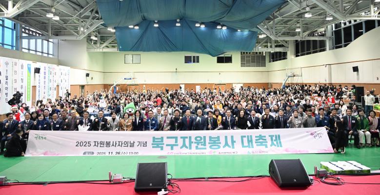 행사는 식전공연, 기념식, 축하공연, 체험·부대행사로 풍성하게 진행됐으며 식전공연에서는 신나는 강장구의 달마와 미녀들, 북구여성합창단이흥겨운 무대를 선보여 큰 호응을 얻었고, 기념식에서는 대회사·축사·격려사와 함께 유공자 표창 및 마일리지 시상이 이어졌으며 올해 자원봉사 대상은야간자율방범 활동, 경로식당 배식, 어르신 이·미용 봉사 등 다양한 분야에서 꾸준히 활동한 자원봉사자에게 수여됐고, 이어진 축하공연에서는 초대가수가 트로트 공연으로 분위기를 고조시켰으며, 부대행사로는 원두커피체험, 포토존, 룰렛돌리기, 나의 자원봉사 활동기 공모·세상을 바꾸는 자원봉사 프로그램 수상작 전시 등이 운영되어 참여자들에게 즐거움과의미를 더했다.
