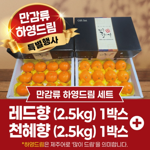 특별세트는 두 가지로 구성된다. 1세트는 레드향 2.5㎏과 천혜향 2.5㎏, 2세트는 레드향 2.5㎏과 한라봉 2.5㎏이다. 기존 답례품과 비교하면 1세트는 67%, 2세트는 39% 증량됐다. 여기에 농산물 소비쿠폰( 7,500원) 혜택까지 더해져 10만 원 기부 시 주어지는 3만 포인트로 만감류 5㎏을 받을 수 있다.