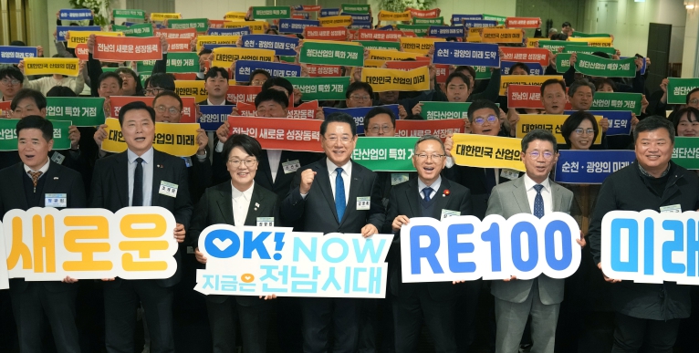 [뉴스앤톡] 전라남도는 25일 서울 여의도 CCMM빌딩 컨벤션홀에서 ‘RE100 미래첨단 국가산단 유치 포럼 및 결의대회’를 열고, 순천·광양을 중심으로 한 국가산단 조성 필요성과 추진 전략을 공유했다.