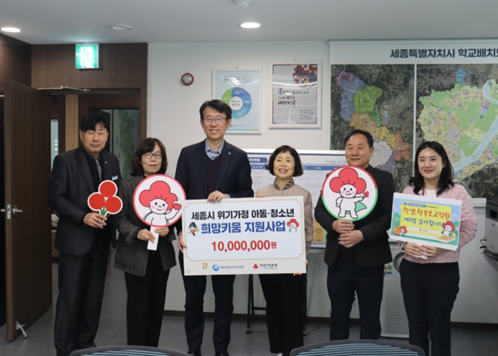 [뉴스앤톡] 세종사회복지공동모금회는 20일 오후2시 세종특별자치시교육청에서‘2025년 기획사업 위기가정 아동청소년 희망키움지원사업’배분금 1천만원을 전달했다.