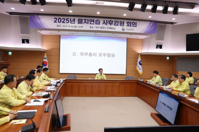 [뉴스앤톡] 김민석 국무총리는 9월 12일 오후 정부서울청사에서 중앙행정기관장, 시·도지사 등 150명이 참석한 가운데 2025년 을지연습 사후강평회의를 주재했다.