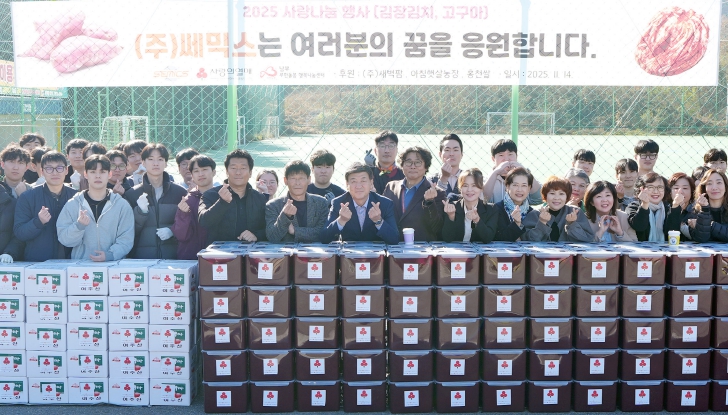 [뉴스앤톡] ㈜쎄믹스는 14일 광주시 남부 무한돌봄 행복나눔센터에 김장김치 2천400박스(8㎏), 고구마 2천500박스(5㎏), 백미 300포(10㎏) 등 각종 농산물 1억 5천만 원 상당을 전달했다.