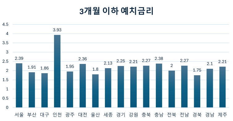 | ▲ 전남도 3개월 이하 정기예금 금리 |