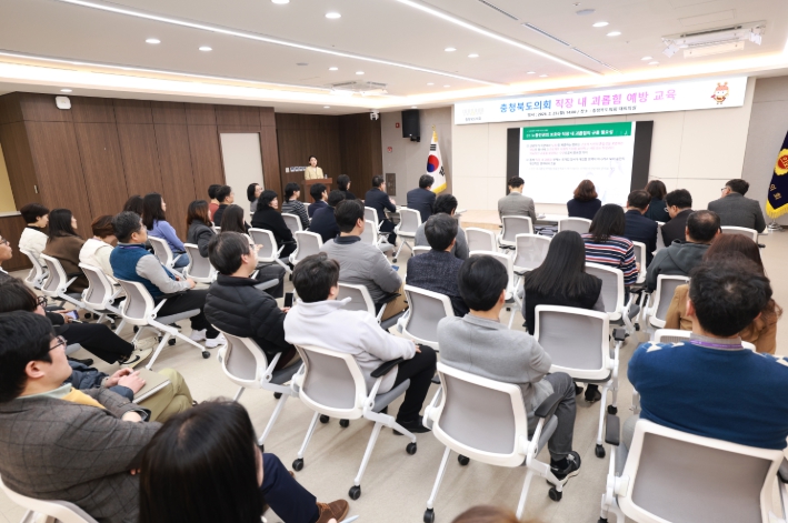[뉴스앤톡] 충북도의회는 23일 도의회 회의실에서 사무처 직원을 대상으로 직장 내 괴롭힘 예방 교육을 실시했다.