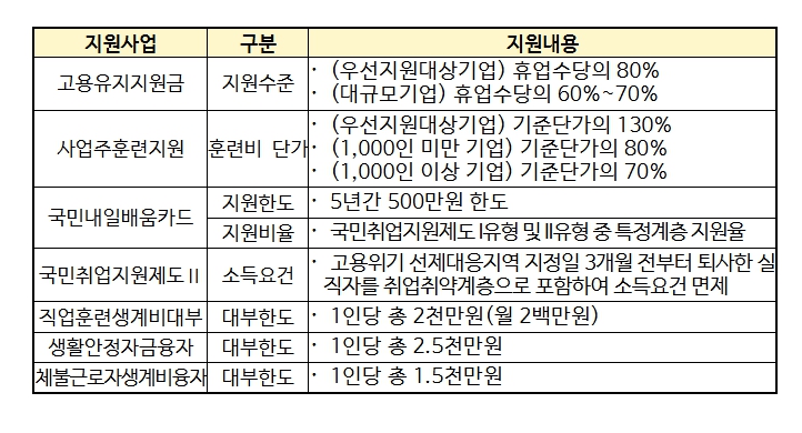 | ▲ 고용위기 선제대응지역 지원 내용 |