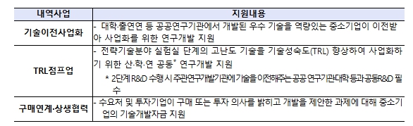 | ▲ 민관공동기술사업화R&D 지원내용 |