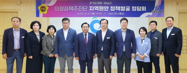 [뉴스앤톡] 경기도의회 의정정책추진단은 13일 하남시청에서 열린 ‘지역 현안 정책 정담회’를 통해 하남지역의 주요 정책 현안과 경기도의회 차원의 지원방안을 논의했다.