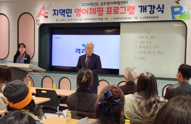 [뉴스앤톡] 경상북도 성주교육지원청 산하 성주영어체험센터는 지역민의 영어 의사소통 능력 향상과 평생학습 문화 확산을 위해 '2026학년도 지역민 영어 회화 프로그램' 개강식을 성주영어체험센터 메인홀에서 개최했다.