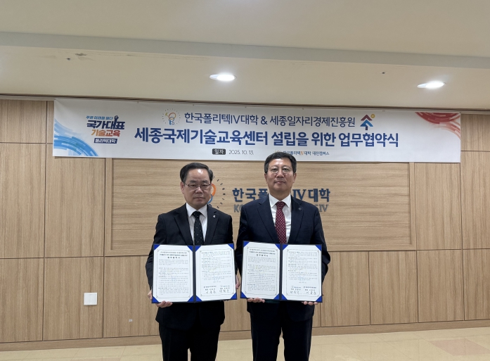 [뉴스앤톡] 세종일자리경제진흥원과 한국폴리텍Ⅳ대학은 13일 한국폴리텍Ⅳ대학 대전캠퍼스에서 ‘세종국제기술교육센터’ 설립 및 운영을 위한 업무협약을 체결했다.