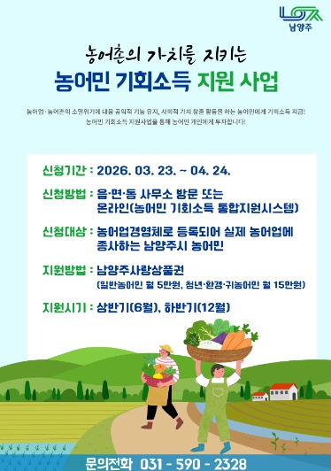 | ▲ 남양주시, ‘농어민 기회소득 지원사업’ 접수 …4월 24일까지 |