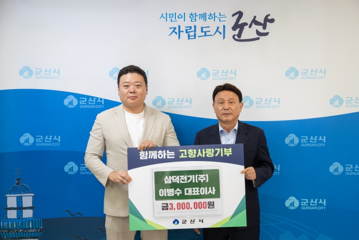 [뉴스앤톡] 군산시는 삼덕전기(주) 이병수 대표이사가 고향사랑기부금 300만 원을 기탁했다고 밝혔다.