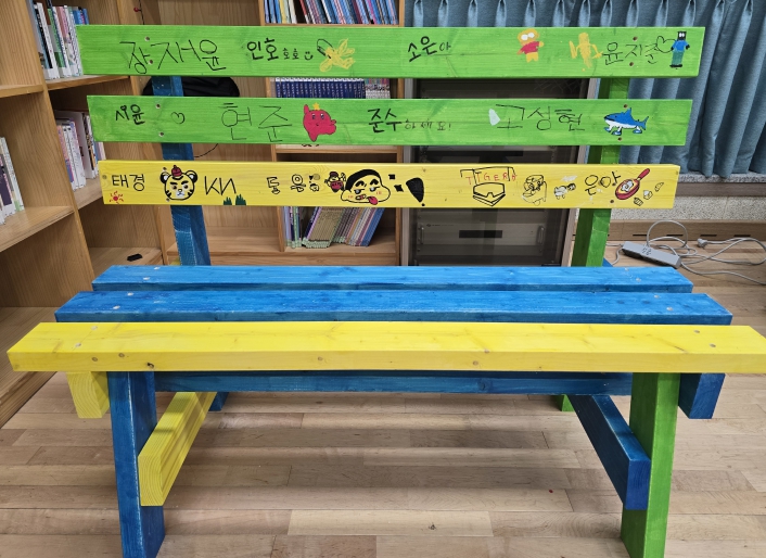 | ▲ 시소센터 상징색을 담아 완성한 ‘알록달록’ 공동 벤치 |
