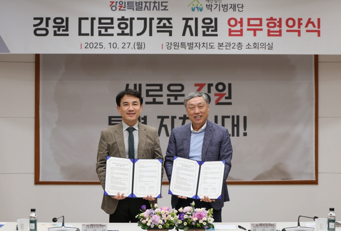 [뉴스앤톡] 강원특별자치도는 10월 27일 오후 3시 30분, 도청 본관2층 소회의실에서 재단법인 박기범재단과 강원 다문화가족 지원을 위한 업무협약을 체결했다.