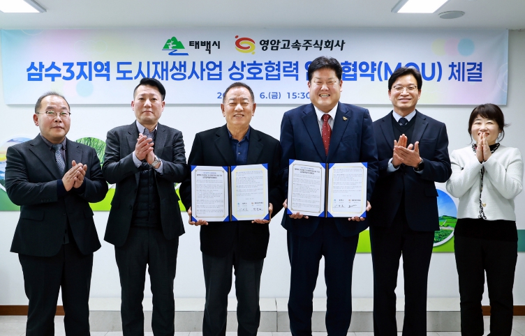 [뉴스앤톡] 태백시는 3월 6일 오후 3시 30분 시청 소회의실에서 영암고속 주식회사와 ‘삼수3지역 도시재생사업 추진을 위한 업무협약’을 체결했다고 밝혔다.