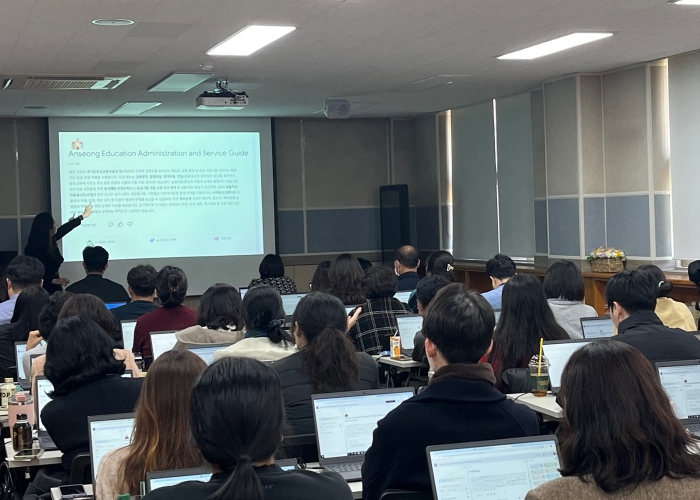 이번 연수는 공감과 소통의 인문학 및 디지털(캔바, 노션 등 생성형AI 활용) 역량 강화를 주제로 총 3개의 강좌가 진행됐다. 특히, 직접 디지털 플랫폼 실습이 가능한 환경을 마련하기 위해 노트북 1인 1대 제공, 예비 인터넷 연결망 확보 등 연수자 편의를 도모하고 프로그램의 효과성을 높이는 데 중점을 두었다. 또한, ‘2025년 안성교육 기본계획’을 포함한 실제 안성 관내 지방공무원에게 업무 관련성이 높은 자료를 소스로 활용하여 학습자의 관심와 참여를 극대화함으로써 큰 호응을 얻었다.