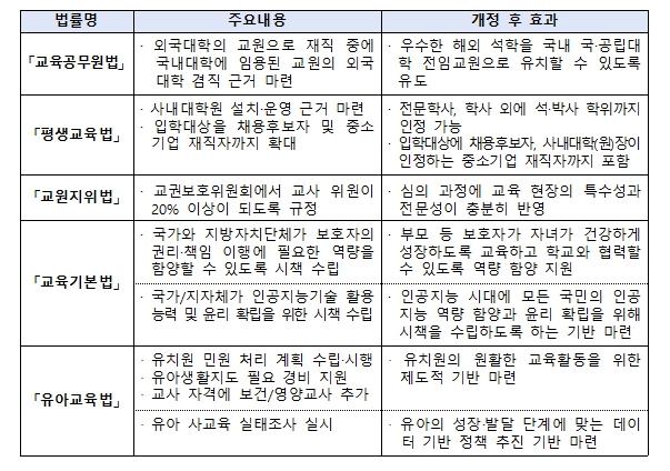 '11' 초‧중등교육법(시행: 공포 후 6개월) ※제28조의2 및 제60조의5는 공포 후 3개월