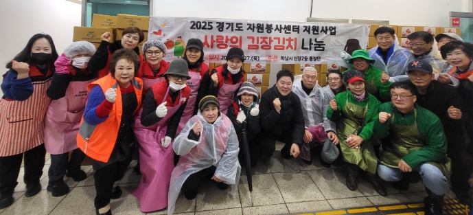 [뉴스앤톡] 하남시 신장2동 통장단은 경기도 자원봉사센터에서 공모한 “2025년 도민이 전하는 자원봉사 2차 김장지원 공모사업”에 선정되어 27일 자원봉사자들과 함께 김장김치를 정성스레 담궈 취약계층 200가구에 전달했다.