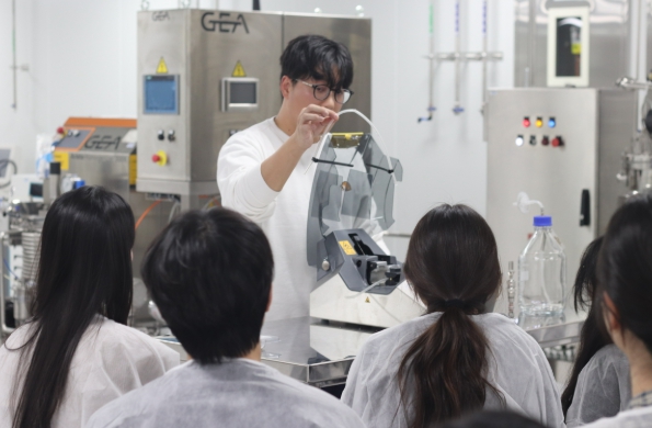 교육 과정에는 ▲GMP(우수 의약품 제조 및 품질관리기준) 제조소 투어 ▲GMP 문서관리 이론 교육 ▲배양·정제 공정 VR(가상현실) 체험 ▲원료 칭량 및 배지 조제 등 배양 실습 ▲버퍼 조제 등 정제 실습 ▲이화학·미생물 시험 등 실제 생산 환경을 반영한 단계별 실습이 포함돼, 단순히 이론 전달을 넘어 바이오의약품 제조 흐름을 현장감 있게 이해할 수 있도록 구성됐다.