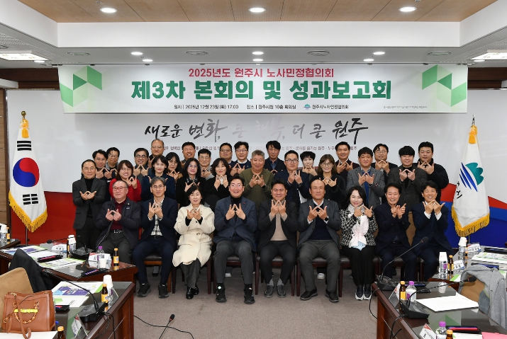 [뉴스앤톡] 원주시 노사민정협의회는 23일 오후 5시 시청 10층 대회의실에서 제3차 본회의 및 성과보고회를 개최했다.