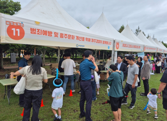 광역정신건강복지센터, 제주·서귀포 중독관리통합지원센터 등 관련 기관들이 참여한 홍보·체험 부스에서는 체성분 검사와 운동 상담, 아로마 수면용품 만들기, 가상 음주 체험 등 다양한 프로그램이 운영됐다.