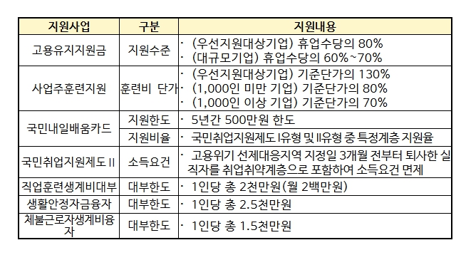 ▲ 고용위기 선제대응지역 지원 내용