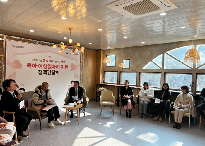 [뉴스앤톡] 강원특별자치도교육청은 2월 12일 강원특별자치도교육청유아교육원에서 육아 중인 부모와 경력단절여성 등 20여 명이 참석한 가운데, 강원특별자치도와 함께하는 ‘육아지원·여성일자리 정책간담회’를 개최했다.