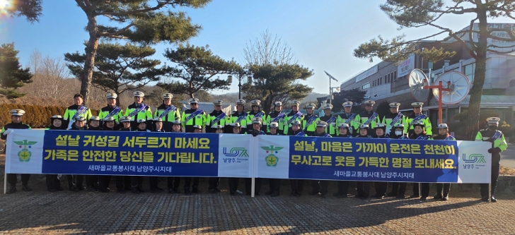 나용자 새마을교통봉사대 남양주시지대 대장은 “설 명절을 맞아 교통안전 캠페인이 시민 모두에게 안전운전의 중요성을 다시 인식하는 계기가 되길 바란다”며 “연휴 기간 교통량이 늘어나는 만큼 제한속도 준수와 전 좌석 안전띠 착용을 생활화해 주길 바란다”고 말했다.