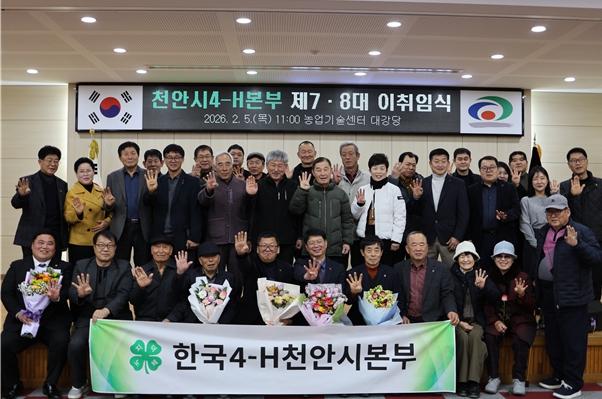 [뉴스앤톡] 천안시4-H본부는 지난 2월 5일 천안시농업기술센터 대강당에서 김양섭 농업기술센터소장, 농업인단체장 및 4-H회원이 참석한 가운데 ‘천안시4-H본부 제7·8대 회장 이·취임식’을 개최했다고 밝혔다.