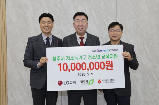 이범석 청주시장은 “매년 변함없는 나눔을 실천해 주시는 LG화학 청주공장에 깊이 감사드린다”며 “이번 교복지원금이 청소년들에게 새로운 출발을 응원하는 든든한 힘이 되길 바라며, 시에서도 아이들이 건강하게 성장할 수 있는 복지 환경 조성에 최선을 다하겠다”고 밝혔다.